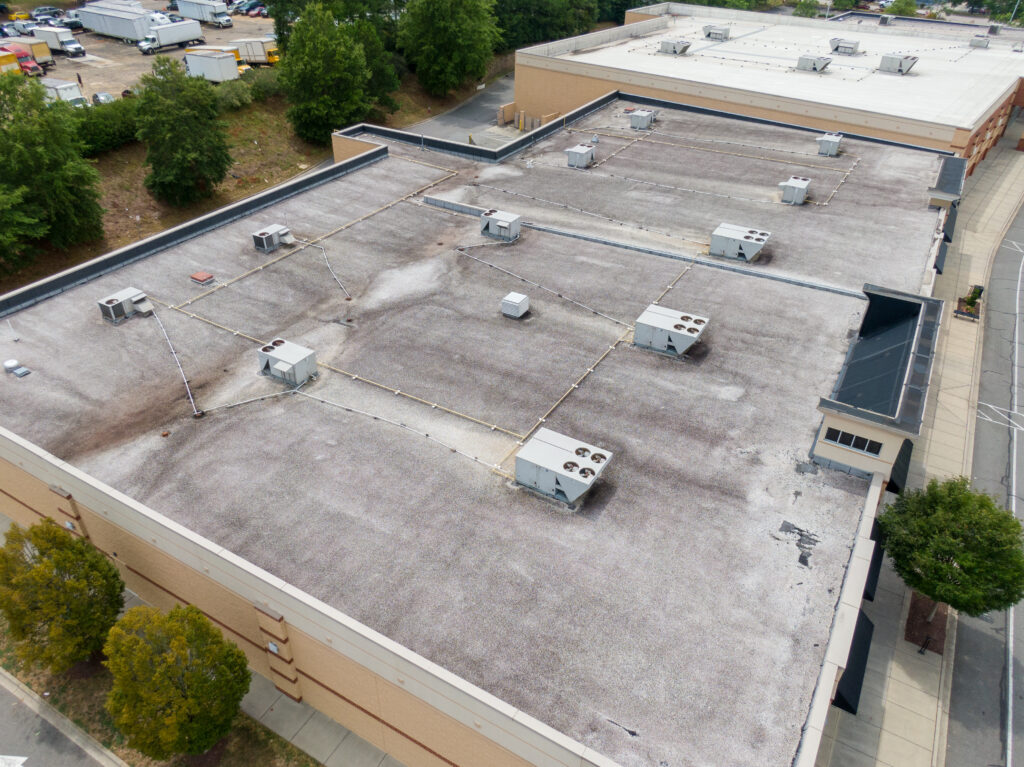 屋上全体を上空から撮影し、防水層の状態や劣化の有無、